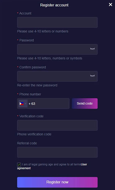 4. Fill in your phone number and click “Send code” to fill in the verification code.